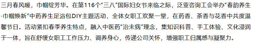 春韵养生 巾帼焕新——泛亚咨询工会举办三八妇女节主题活动